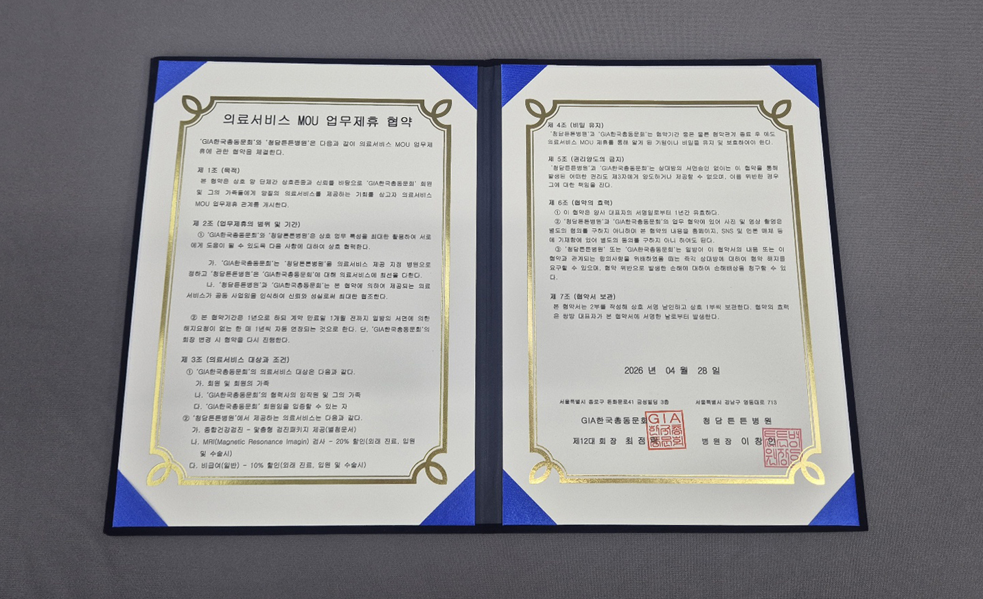 GIA한국총동문회(회장 최점락)는 청담튼튼병원(병원장 이창인)과